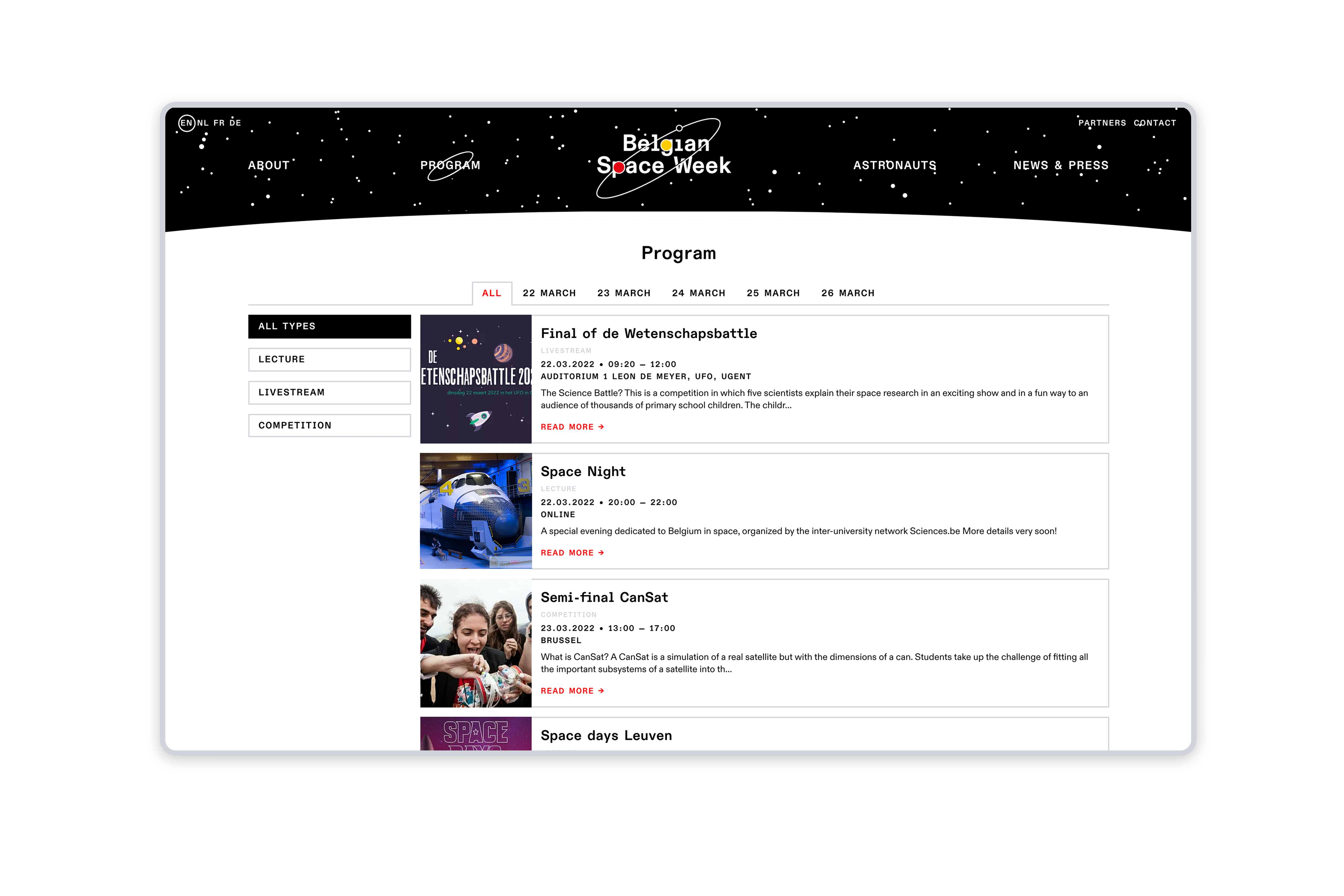 The website forms the core of the event's branding and is currently used by all the nine Belgian universities in four different languages.